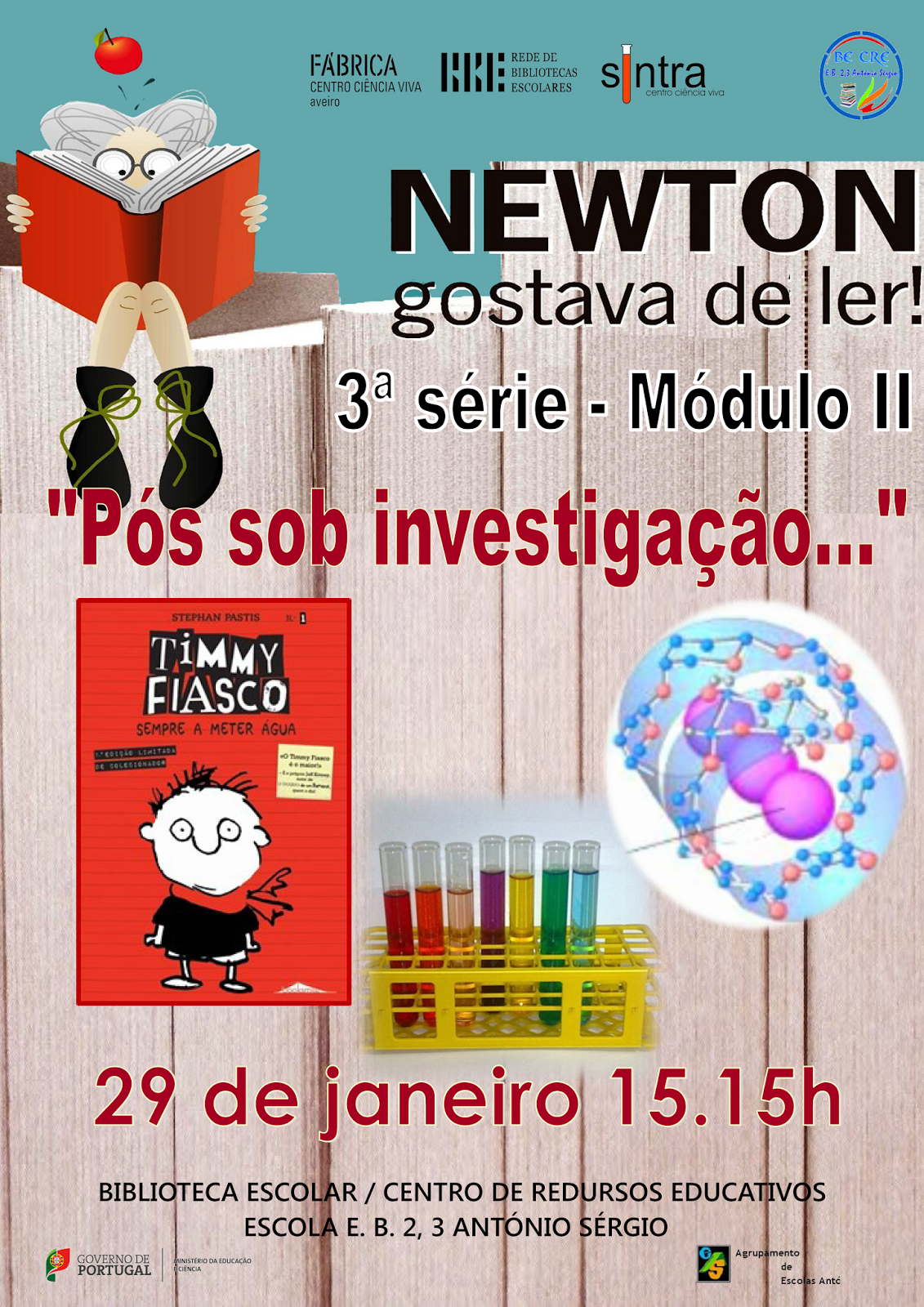 A nossa escola aderiu ao projeto Newton e já se realizaram as duas primeiras sessões, nos dias 16 de novembro e 7 de dezembro, onde a leitura e a ciência estiveram de mãos dadas. A turma- base do projeto é o 6ºC e, ao longo do ano, e na Semana da leitura, alargar-se-ão as sessões a outras turmas/ anos/ ciclos, conforme a temática e o interesse que os professores das áreas das Ciências possam manifestar, de acordo com o perfil das suas turmas.